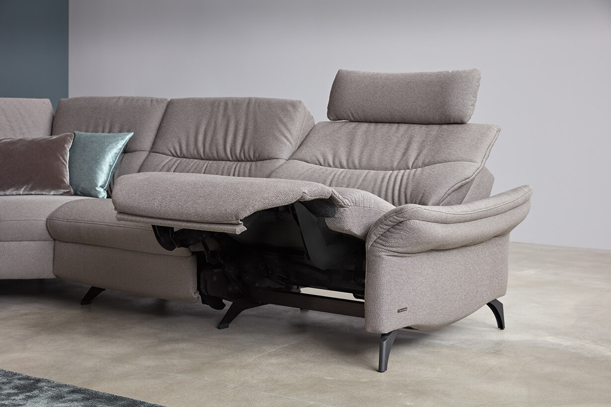 Das Sofa SIGNA 1052 von himolla wurde im Jahr 2019 auf der Brüsseler Möbelmesse mit dem begehrten BALTHAZAR in der Kategorie "Best International" ausgezeichnet. Zudem hat es gerade den GERMAN DESIGN AWARD 2021 - SPECIAL MENTION in der Kategorie »Excellent Product Design - Furniture« bekommen. Es überzeugt sowohl in puncto Optik als auch hinsichtlich seiner funktionalen Eigenschaften. Die Couch, die als Einzelsofa wie auch als mehrteilige Eckkombination erhältlich ist, beeindruckt mit ihrem modernen, kuschelig-einladenden Design samt "umarmendem", mitlaufenden Seitenteil. inklusive mitlaufender Armlehne. Auch die Bodenfreiheit sowie die elektrisch aufklappbare Beinauflage tragen maßgeblich zur Popularität dieses Designsofas bei. Über den Kippschalter seitlich am Sitz gelingt das Verstellen buchstäblich im Handumdrehen. Die integrierten Kopfstützen erhöhen den Sitzkomfort zusätzlich.- aufklappbare Kopfstützen