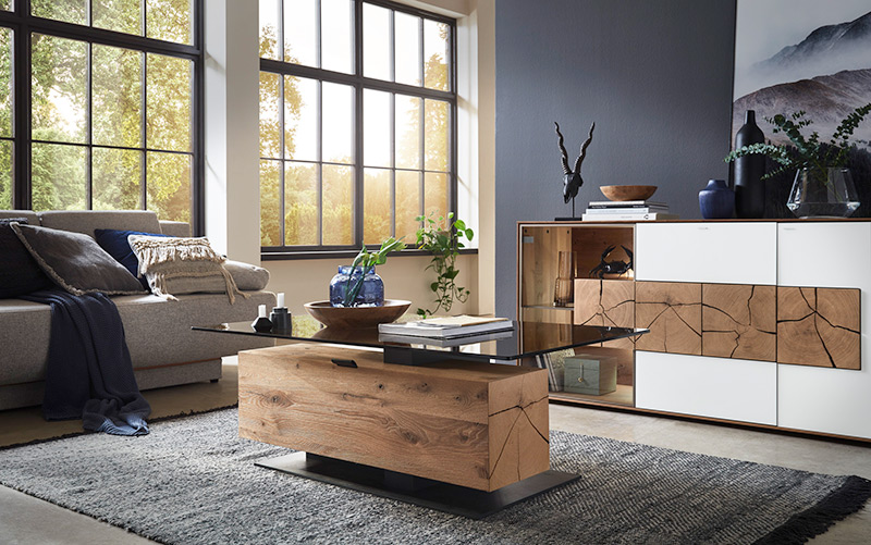 Möbel aus massivem Holz überzeugen durch eine hohe Wertbeständigkeit und einen großen "Wohlfühleffekt". Massivholz trägt grundsätzlich dazu bei, einen Wohnraum gemütlicher und gesünder zu gestalten. Deshalb findet es gerade im Wohnzimmer - dem am stärksten frequentierten Raum des Hauses - immer mehr Verwendung. Zahlreiche moderne